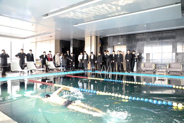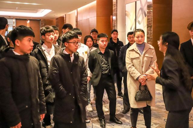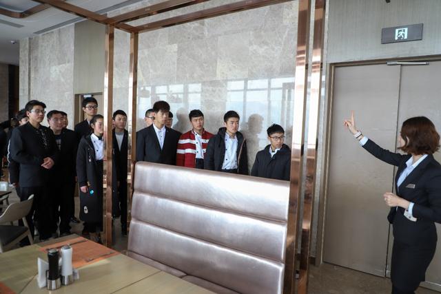 当老师和同学们一行到达希尔顿酒店后,受到了酒店人事主管和领导的热情接待,酒店内精致华美的装修和细致的服务令所有前来参观的学子们感受到希尔顿酒店的独特魅力。