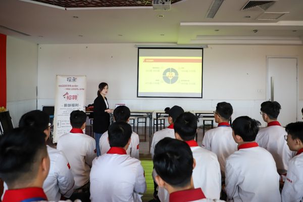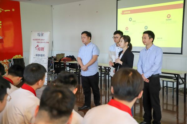 宣讲会上,企业领导带着准备充分的宣讲ppt实景图片,跟学生讲解企业文化、发展历程、薪资福利、岗位招聘要求,并现场与同学们进行问答交流,让同学们充分了解到企业信息,并极力推荐学生选择自己的企业。