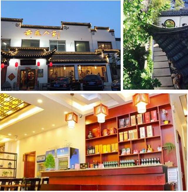 安徽人家,是集徽文化、徽建筑、徽菜、徽茶、徽酒、徽烟于一体的徽派文化主题连锁酒店,置身其中,让顾客充分感受到传统的徽文化氛围。安徽人家以徽派建筑青砖黛瓦马头墙的设计特点为主调,借鉴徽州“三绝”砖、木、石雕, 展示了徽州风情及人文风貌。