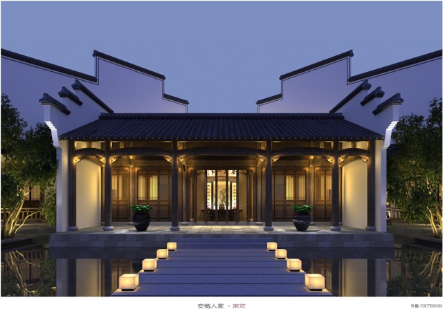 安徽人家·舜庐,本项目占地二十二亩,总建筑面积为 7000 平方米,是一个包括徽菜园、徽文化园、徽派民宿客房在内的商务、旅游度假项目。